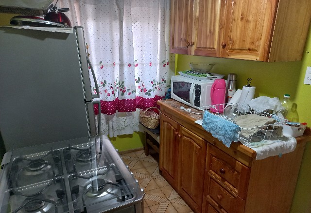 El piso del inmueble se encuentra en perfecto estado como asimismo la pintura y sus artefactos. La casa posee un baño con tina, una sala de estar pequeña al igual que su cocina, la que es perfectamente ampliable al doble de su tamaño si la persona que la compre quisiera hacerlo. La cocina tiene salida hacia la logia donde se instalan la secadora y la lavadora que conectan con un lavamanos.